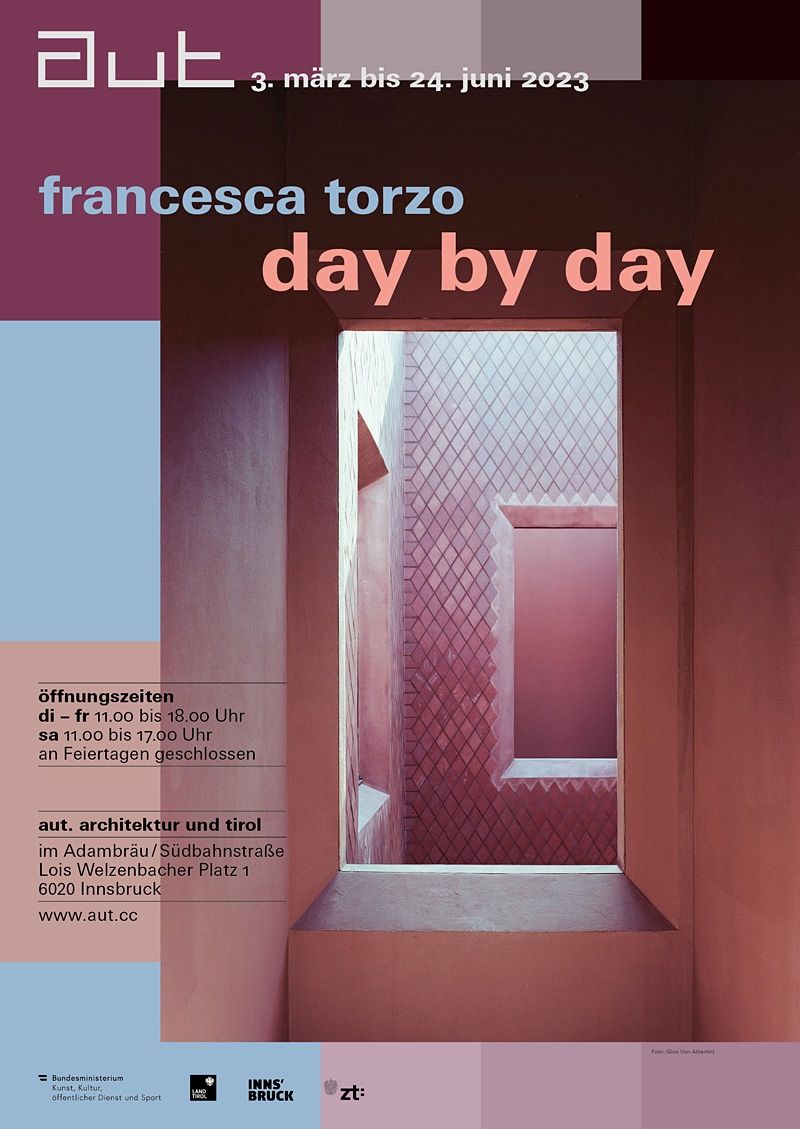 She founded her own office in 2008, which consists of an international team of young architects, and has realised several small, sophisticated residential projects in Italy, among others, and is also active internationally. What all of Francesca Torzo's projects have in common, are the extremely high standards she sets for herself and her work. The exhibition "Day by Day", conceived by Francesca Torzo for the aut, is her first grand solo exhibition. The exhibition performs as an atmospherically dense journey through our premises and negotiates some of the architectural and social issues that are essential to the office's way of working.