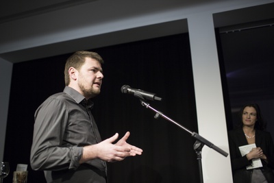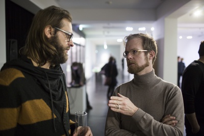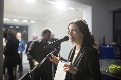 AusstellungseröffnungEs sprechen Verena Konrad, Direktorin vai und Bernardo Bader, Architekt.