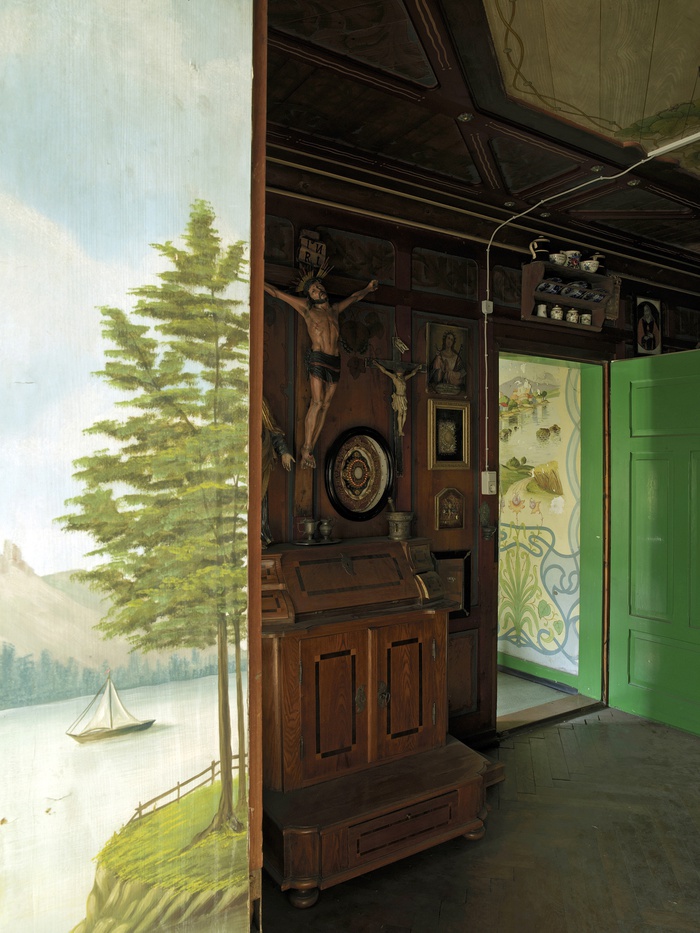 „Der Fotoapparat ist nicht nur ein bildgenerierendes Mittel, sondern eine Art Sehinstrument, eine Möglichkeit, Dinge anders zu betrachten. Es fängt damit an, dass ich mir auf der Suche nach dem Bild Zeit nehme, ein Haus richtig anzuschauen, bis in kleineste Details. Dann muss ich einen Standort wählen, den Blickwinkel festlegen, das Umfeld miteinbeziehen oder ausblenden. Und die Suche setzt sich im Innern fort, da geht es um die Bewohnerinnen und Bewohner, den Geist des Hauses“, erzählt Arno Gisinger darüber, wie er ein Hausporträt fertigt.