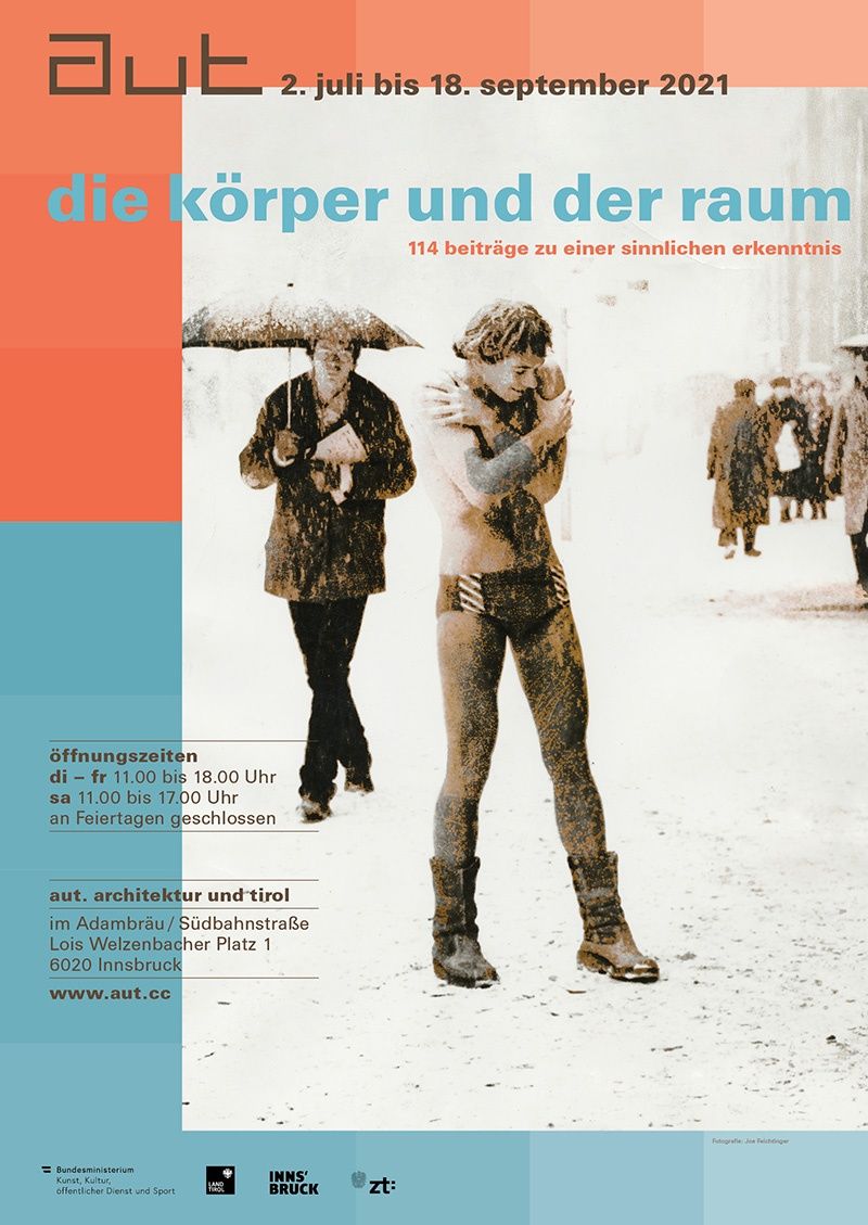 An der Ausstellung "Die Körper und der Raum" beteiligten sich über 100 Personen bzw. Büros, die in den vergangenen Jahren aktiv am Programm des aut mitgewirkt haben, mit einer visuellen, hör- oder lesbaren Referenz, die die jeweils individuelle Beziehung zwischen dem/den Körper/n und dem realen, sozialen wie virtuellen Raum verdeutlicht.