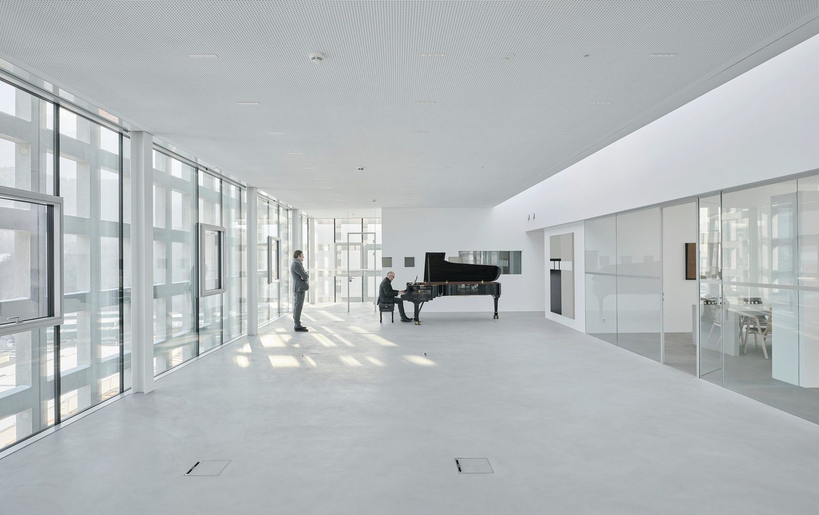 „Am Beginn des Entwurfs von ao-architekten muss wohl das genaue Studium des aus den 1970er-Jahren stammenden Gebäudes gestanden sein. Wie sonst wäre es möglich, dass sich die Proportionen der Aufstockung subtil auf den Altbau beziehen? Beide Bauteile wirken durch diese maßliche Verwandtschaft fein „gestimmt“. Es ist ein neues Ganzes entstanden, das die zeitlich unterschiedliche Herkunft beider Teile nicht verschweigt.“ (Auszug aus dem Jurytext von Sonja Gasparin)