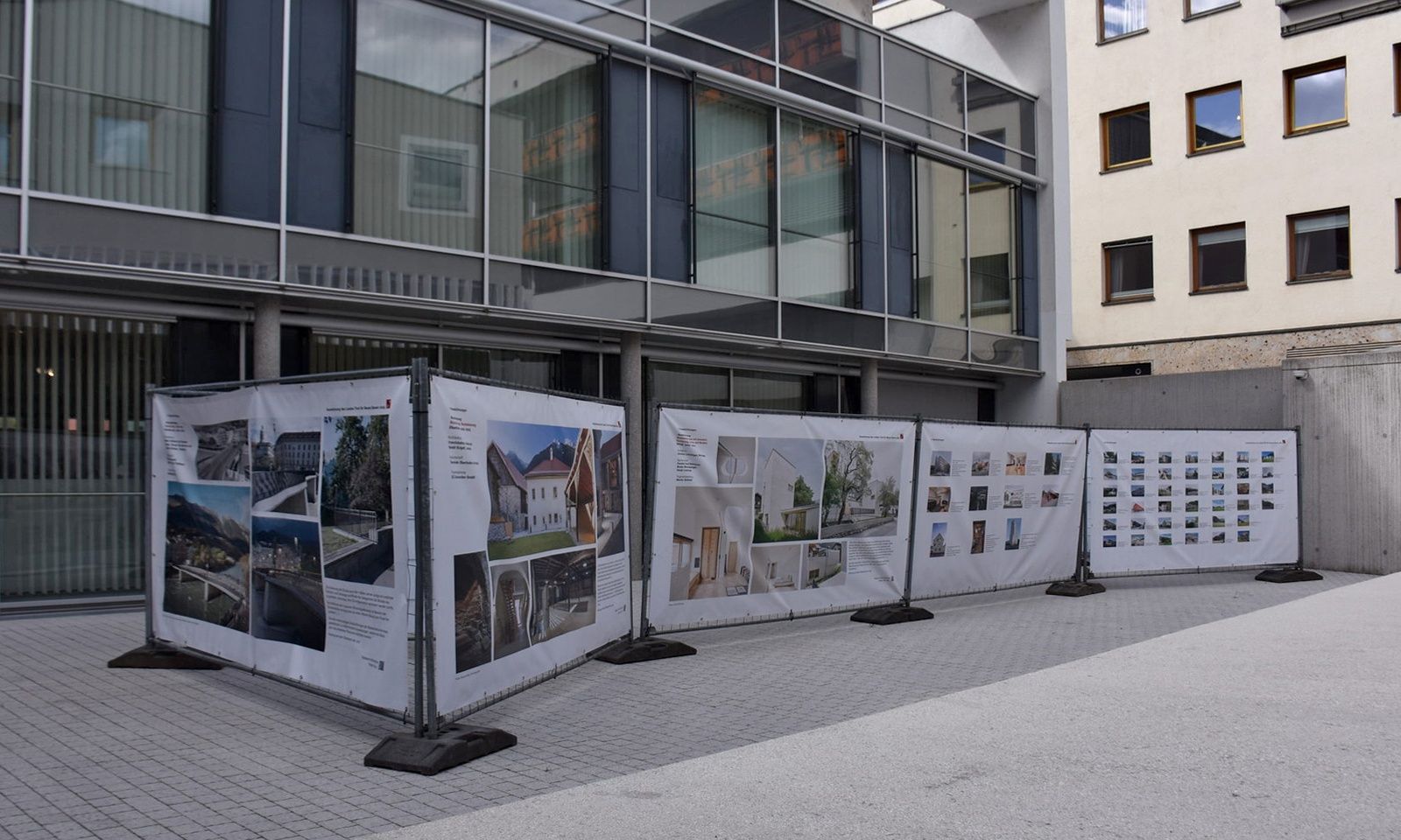 Diese Ausstellung geht – mit Unterstützung des Landes Tirol, der Kammer der Ziviltechniker:innen | Arch+Ing Tirol und Vorarlberg, Sektion Architekt:innen und des aut – in einer eigens für den öffentlichen Raum konzipierten Version auf Wanderschaft quer durch Tirol. Auf insgesamt 10 Planen sind sämtliche Preisträger-Projekte mit großformatigen Bildern und Auszügen aus der Jurybegründung präsentiert sowie sämtliche Einreichungen fotografisch dokumentiert. Damit bietet die Ausstellung nicht nur in der Landeshauptstadt der interessierten Öffentlichkeit eine gute Gelegenheit, sich einen Überblick über das aktuelle Architekturgeschehen in Tirol zu verschaffen.