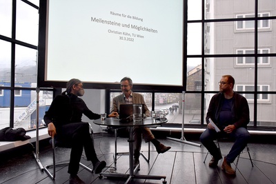 Aufzeichnung des "nimm 3" zum Thema "Lehr- und Lernräume" mit Tabernig Zierl, Klingan/Konzett und riccione Architekten am 24. März 2022 im aut.