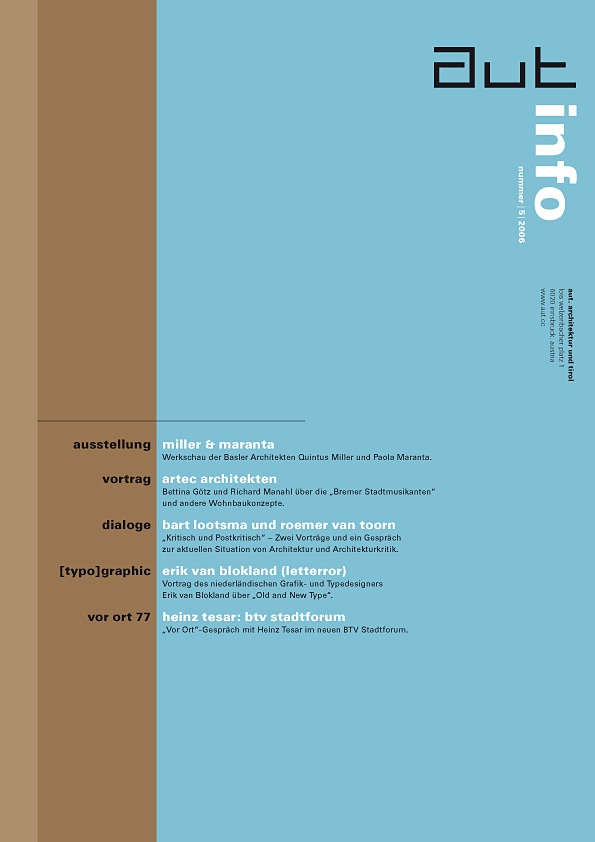 - Programm des aut zwischen September und November 2006, u. a. mit Vorträgen von Quintus Miller, ARTEC Architekten, Bart Lootsma und Roemer van Toorn