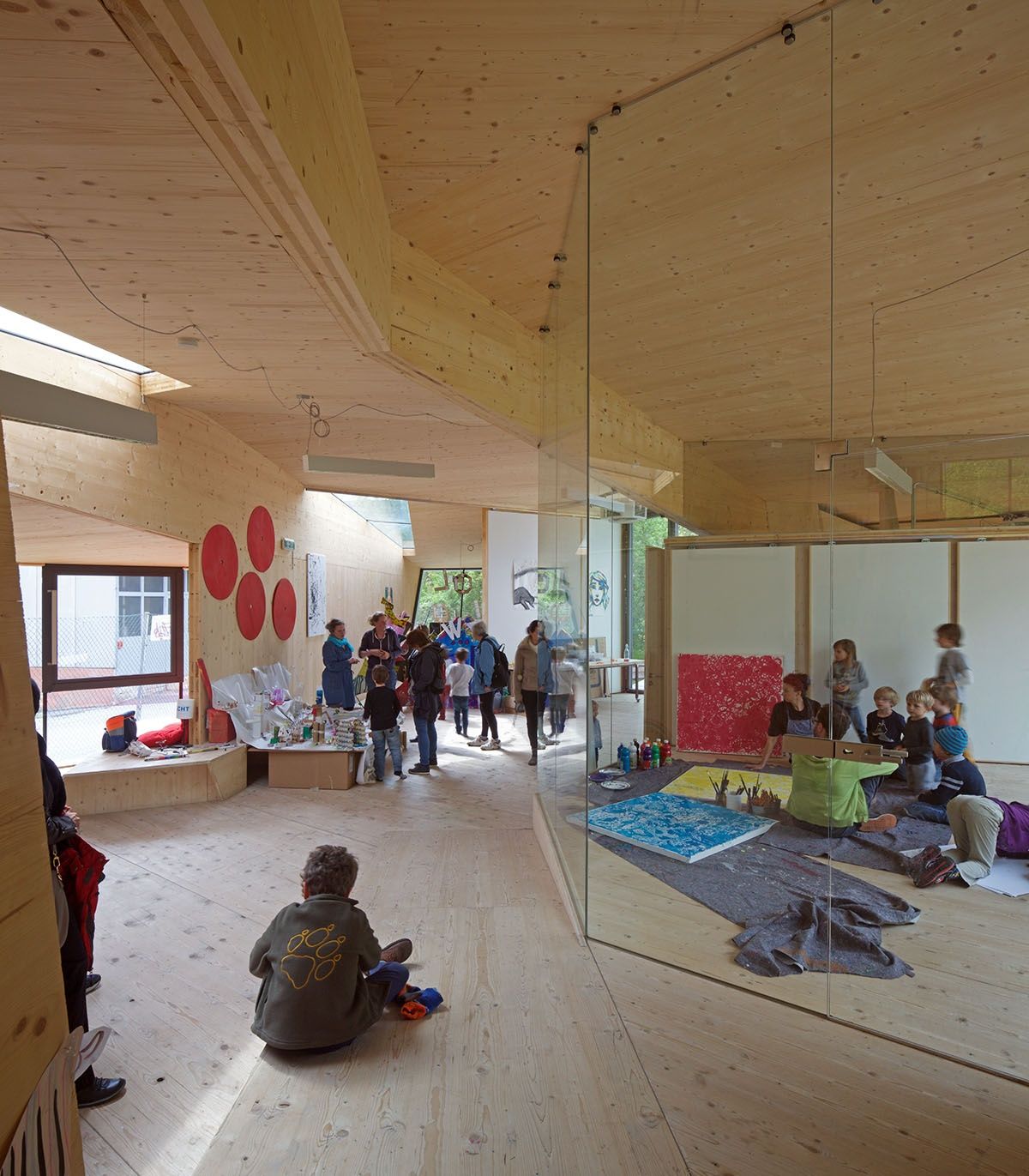 Eine Führung mit den Architekt*innen Mario Dallaserra, Claudia Gast und Benedikt Hörmann (Unisono) durch den 2021 fertig gestellten Lern- und Lebensraum für Kinder.