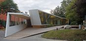 Entstanden ist ein pavillonartiges Werkstättengebäude, das nicht nur den Kindern und Jugendlichen als NutzerInnen ein optimales Raumangebot bietet, sondern auch den Park durch seine einzigartige Architektur bereichert. Vorgelagerte Terrassen und raumhohe Glasfronten verbinden den geschwungenen Baukörper mit der Umgebung, im Inneren bilden schräge Böden und Wände ein fließendes Kontinuum an Räumen mit unterschiedlichen Atmosphären und Arbeitsmöglichkeiten.