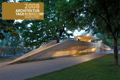 Eröffnung der im Rahmen der "Architekturtage 2008" von columbosnext konzipierten Plattform am Innufer im Walther von der Vogelweide Park, die während der Architekturtage als Treffpunkt und Lounge fungiert.