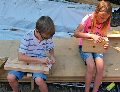 Ein Workshop für Kinder ab 8 Jahren, bei dem einfache Sitzmöbel angefertigt werden.