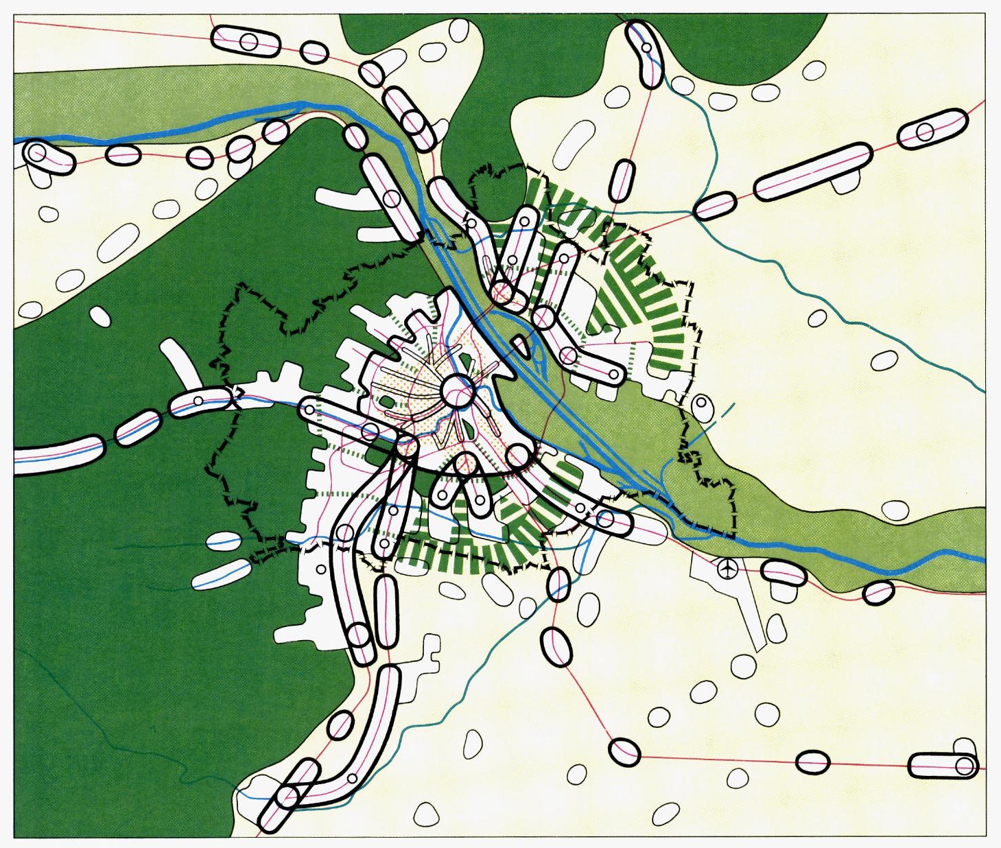 PodiumsdiskussionBereits in Roland Rainers Planungskonzept von 1962 hatte der Schutz und die Entwicklung großräumiger Grün- und Landschaftstrukturen breiten Raum eingenommen. Konkrete Umsetzungen wurden aber, von der erst nachträglich zum grünen Freizeitprojekt uminterpretierten Donauinsel abgesehen, erst mit dem ab 1976 erarbeiteten ersten Stadtentwicklungsplan von 1985, möglich. Wichtigstes, im STEP’85 neu eingeführtes Element der Grünraumentwicklung sind die „Grünkeile“ bzw. „Grünzüge“: „Durch das weitere Wachstum der Stadt in Form von bandartigen Siedlungsachsen werden zunehmend radial geführte „Grünkeile" und „Grünzüge" für die ausreichende Grünversorgung entscheidend. Diese sollen zwischen den Siedlungsachsen möglichst tief (z. B. als Grünzug oder Grünverbindung) ins dichtbebaute Stadtgebiet geführt werden.“