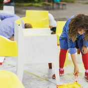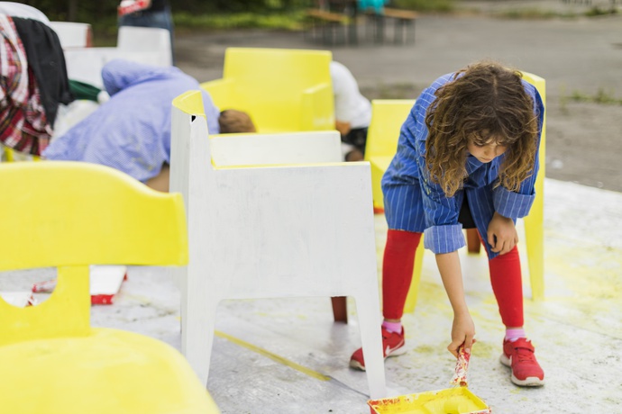 Kinder und Jugend, SpecialsDie Schülerinnen und Schüler der Volksschule Feldkirch Levis schenken ausrangierten Stühlen ein zweites Leben: Sie werden zum temporären Mobiliar im Stadtraum und zum Leitsystem der Architekturtage umgearbeitet. Im Werkunterricht lernen die Kinder das Malerhandwerk kennen. Ein Malermeister zeigt ihnen, wie sie mit Holz umgehen, es vorbehandeln, und dann bemalen können. Die gelben Stühle werden anschließend in der Stadt verteilt, bereit zum Gebrauch für alle. Sie wirken als Blickfang und laden zum Verweilen ein.