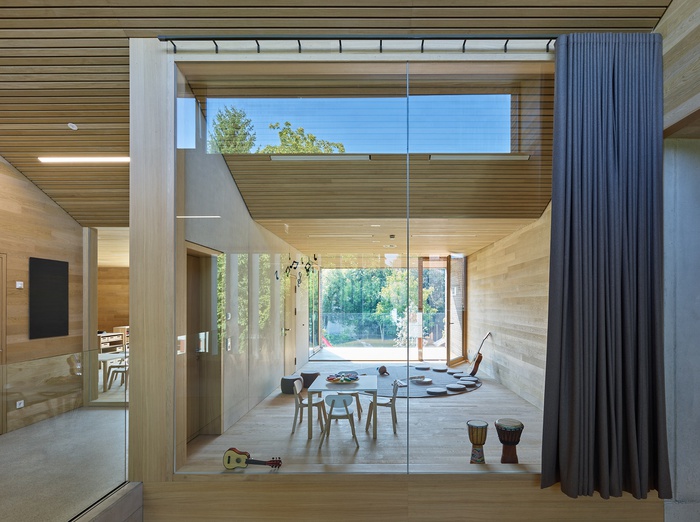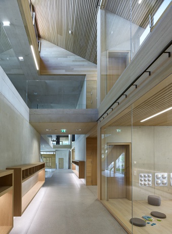 Ulrike Österle, Pädagogische Leiterin und Saskia Jäger, Projektleitern Dorner\ Matt Architekten führen gemeinsam durch den mehrfach ausgezeichneten Kindergarten und beantworten gern Fragen zum spannenden Raum- und Bildungskonzept.