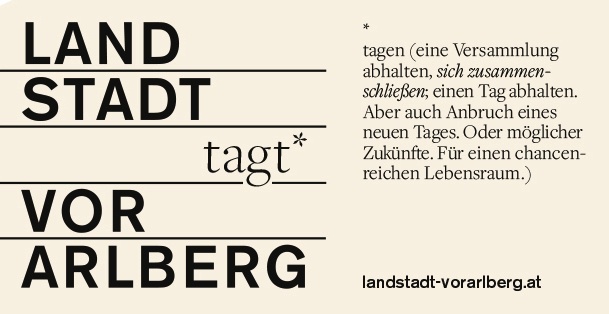 LandStadt-Vorarlberg ist eine Kooperation von Büro für Freiwilliges Engagement und Beteiligung, Bodensee Vorarlberg Tourismus, Kongresskultur Bregenz, Stadtkultur Feldkirch und vai Vorarlberger Architektur Institut.Unterstützt durch Industriellenvereinigung Vorarlberg, Wirtschaftskammer Vorarlberg, Vorarlberg Tourismus.